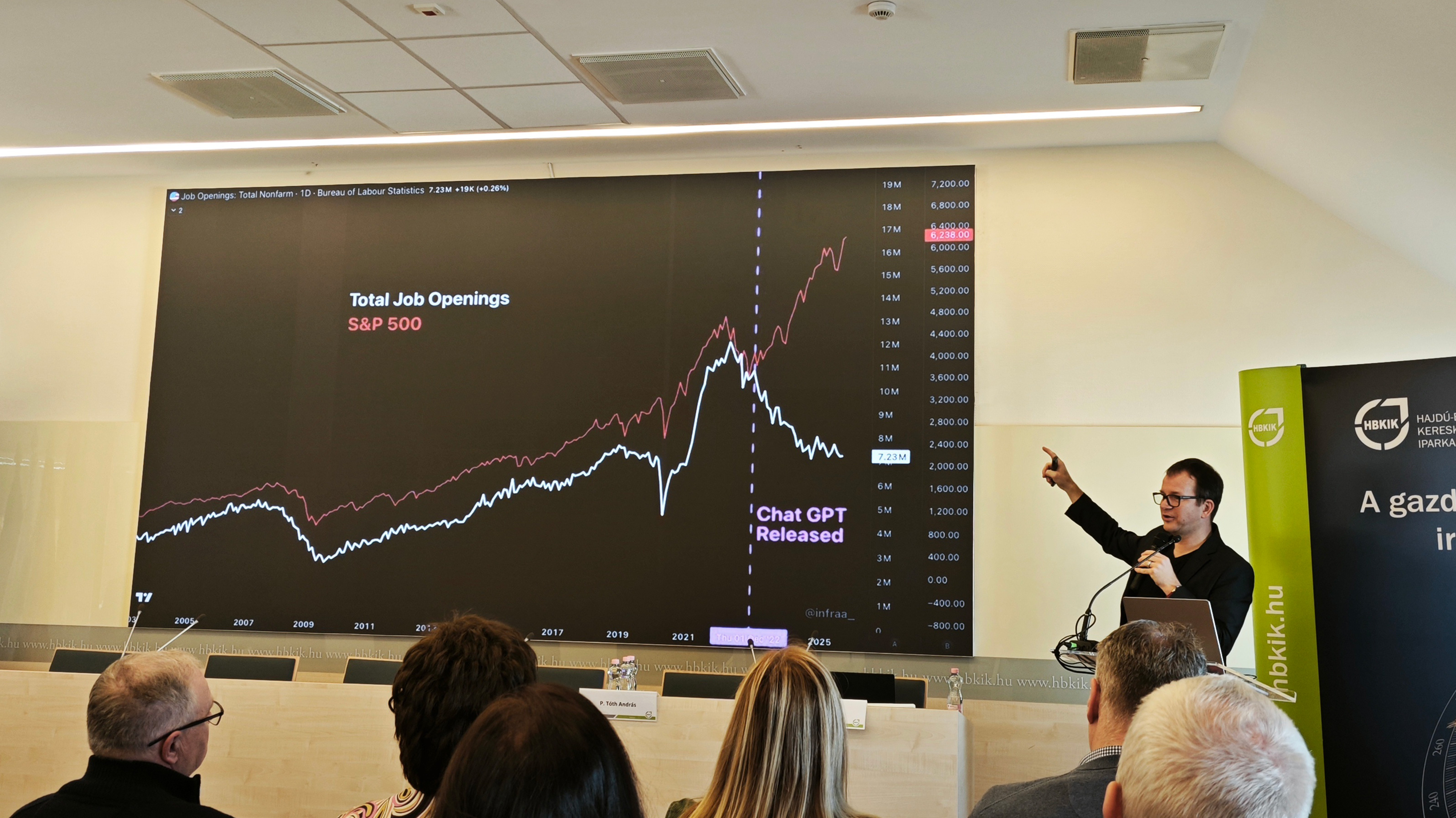 És itt jön a munkaerőpiac kérdése, amit mindenki kerülget, mint forró kását, amíg már muszáj lesz belekanalazni. A rendezvényen felbukkant az „ipari forradalom” párhuzam, és a hasonlat, hogy mintha a lovaknak kellene eldönteniük, bevezessék-e az autókat. A vicc ott van, hogy a lovaknak nyilván nem érdeke. A valóság pedig az, hogy a szervezetekben biztosan lesz ellenállás, nem is feltétlen rosszindulatból. Egyszerűen azért, mert az emberek megérzik: amit eddig értéknek hittek a munkájukban, annak egy része hirtelen "olcsóbbá" válik.
