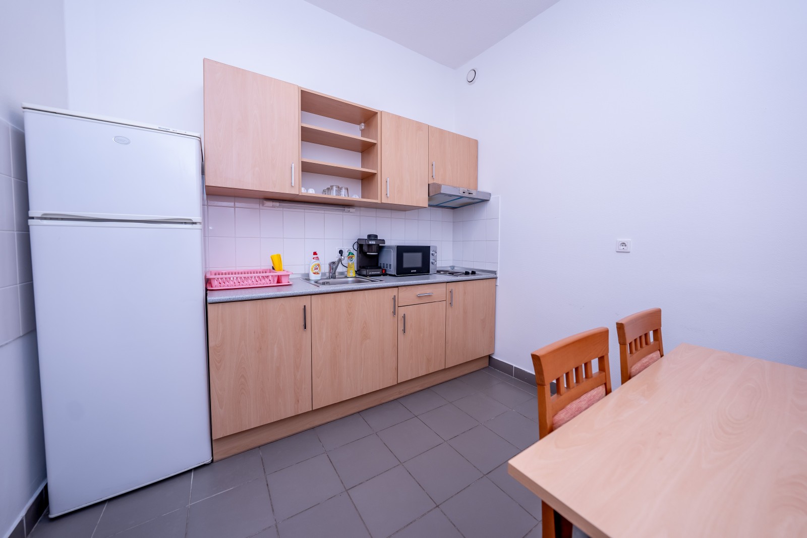 • konyha: mikrohullámú sütővel, főzőlappal, hűtővel felszerelt