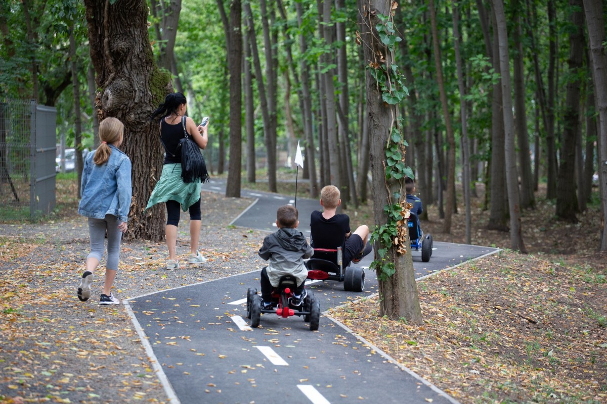 Sziget-Kék tematikus park és játszótér (100 m-re): hatalmas területn, több mint 78 modern játékkal, óriás élménytoronnyal, minivárossal és pedálos kisautókkal várja a családokat. Ingyenesen látogatható, központi épületében mosdók, büfé, baba-mama szoba is van, és rendszeresen szerveznek gyermekprogramokat, interaktív foglalkozásokat.